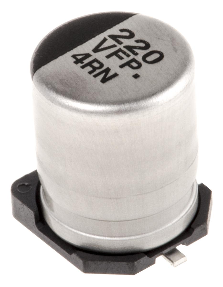 This is Aluminium Electrolytic Capacitor 220μF 35V dc 8mm F FP SMD Series Surface Mount Electrolytic ±20% manufactured by Panasonic. The manufacturer part number is EEEFP1V221AP. Its diameter is 8mm. The given dimensions of the product include 8 (dia.) x 10.2mm. The product is available in surface mount configuration. The product fp smd, is a highly preferred choice for users. In addition, the height is 10.2mm. It provides a 220µf of capacitance value. It carries a 35v dc of voltage. It has a maximum operating temperature of +105°c. It features ±20% of tolerance value. Whereas, the minimum operating temperature of the product is -55°c. This product use aluminium electrolytic technology.