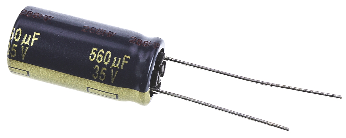 This is Aluminium Electrolytic Capacitor 560μF 35V dc 10mm FK Radial Series Through Hole Electrolytic ±20% manufactured by Panasonic. The manufacturer part number is EEUFK1V561. Its diameter is 10mm. The given dimensions of the product include 10 (dia.) x 20mm. The product is available in radial, through hole configuration. The product fk radial, is a highly preferred choice for users. In addition, the height is 20mm. It provides a 560µf of capacitance value. It carries a 35v dc of voltage. Whereas, the minimum operating temperature of the product is -55°c. It has a maximum operating temperature of +105°c. It features ±20% of tolerance value. This product use aluminium electrolytic technology.