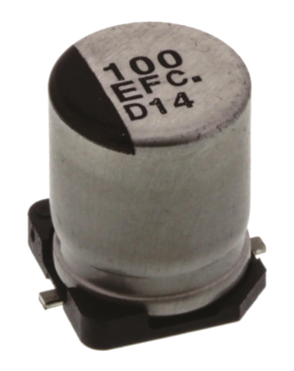 This is Aluminium Electrolytic Capacitor 100μF 25 V dc 8mm Surface Mount FC SMD Series Lifetime 1000h +105°C manufactured by Panasonic. The manufacturer part number is EEEFC1E101P. Its diameter is 8mm. The given dimensions of the product include 8 (dia.) x 10.2mm. The product is available in surface mount configuration. The product fc smd, is a highly preferred choice for users. In addition, the height is 10.2mm. It provides a 100µf of capacitance value. It carries a 25v dc of voltage. It has a maximum operating temperature of +105°c. It features ±20% of tolerance value. Whereas, the minimum operating temperature of the product is -40°c. This product use electrolytic technology.