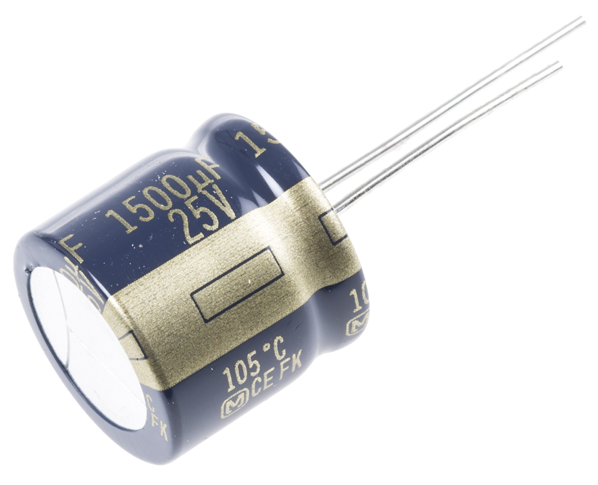 This is Aluminium Electrolytic Capacitor 1500μF 25V dc 16mm FK Radial Series Through Hole Electrolytic ±20% manufactured by Panasonic. The manufacturer part number is EEUFK1E152S. Its diameter is 16mm. The given dimensions of the product include 16 (dia.) x 15mm. The product is available in radial, through hole configuration. The product fk radial, is a highly preferred choice for users. In addition, the height is 15mm. It provides a 1500µf of capacitance value. It carries a 25v dc of voltage. Whereas, the minimum operating temperature of the product is -55°c. It has a maximum operating temperature of +105°c. It features ±20% of tolerance value. This product use aluminium electrolytic technology.