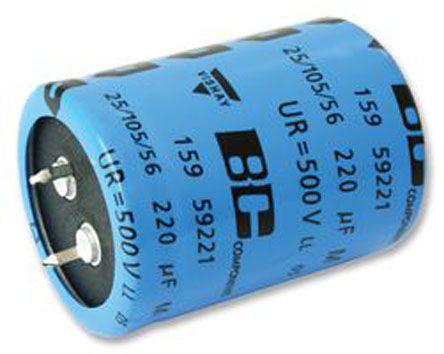 This is Aluminium Capacitor 330μF 500V dc 35mm Snap-In 159 PUL-SI Series Aluminium Snap-In Electrolytic manufactured by Vishay. The manufacturer part number is MAL215919331E3. Its diameter is 35mm. The given dimensions of the product include 35 (dia.) x 45mm. The product is available in snap-in configuration. The product pul-si, is a highly preferred choice for users. It provides a 330µf of capacitance value. Its accurate length is 45mm. It carries a 500v dc of voltage. It has a maximum operating temperature of +105°c. It features ± 20% of tolerance value. Whereas, the minimum operating temperature of the product is -25°c. This product use electrolytic technology.
