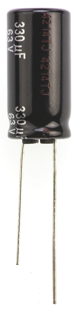 This is Aluminium Electrolytic Capacitor 330μF 63V dc 10mm NHG Series Aluminium Through Hole Electrolytic ±20% manufactured by Panasonic. The manufacturer part number is ECA1JHG331. Its diameter is 10mm. The given dimensions of the product include 10 (dia.) x 20mm. The product is available in radial, through hole configuration. The product nhg, is a highly preferred choice for users. In addition, the height is 20mm. It provides a 330µf of capacitance value. It carries a 63v dc of voltage. It has a maximum operating temperature of +105°c. It features ±20% of tolerance value. Whereas, the minimum operating temperature of the product is -55°c. This product use aluminium electrolytic technology.