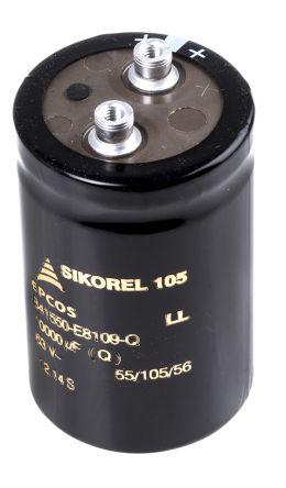 This is Aluminium Electrolytic Capacitor 10000μF 63V dc 51.6mm Screw Terminal B41550 Series Chassis Mount Electrolytic manufactured by EPCOS. The manufacturer part number is B41550E8109Q. Its diameter is 51.6mm. The given dimensions of the product include 51.6 (dia.) x 80.7mm. The product is available in chassis mount configuration. The product b41550, is a highly preferred choice for users. In addition, the height is 80.7mm. It provides a 10000 µf of capacitance value. It carries a 63 v dc of voltage. Whereas, the minimum operating temperature of the product is -55°c. It has a maximum operating temperature of +105°c. This product use electrolytic technology.