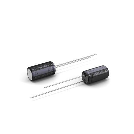 This is Capacitor Al Electrolytic 160V 1uF manufactured by Panasonic. The manufacturer part number is ECA2CHG010. Its diameter is 6.3mm. The given dimensions of the product include 6.3 dia. x 11.2mm. The product is available in through hole configuration. The product m, is a highly preferred choice for users. In addition, the height is 11.2mm. It provides a 1 µf of capacitance value. It carries a 160 v dc of voltage. It has a maximum operating temperature of +105°c. It features ±20% of tolerance value. Whereas, the minimum operating temperature of the product is -25°c. This product use electrolytic technology.