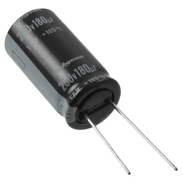 This is manufactured by Rubycon. The manufacturer part number is 250TXW180MEFC18X25. It is assigned with possible HTSUS value of 8532.22.0020. The product is rohs3 compliant. The product features a [Ploarization] polarity. It provides a 180 µf of capacitance value. The product has -40°c ~ 105°c operating temperature range. Moreover, the product comes in [Package/ Case]. It features ±20% of tolerance value. It also exhibits voltage rating of 250 v. It has the maximum seated height of 1.083" (27.50mm) Additionally, it carries a ripple current and high frequency of 1.23 a @ 100 khz. In addition, it is reach unaffected. Its ripple current at low frequency is 880 ma @ 120 hz. The product is widely employed in general purpose. It is shipped in bulk. The product's diameters include 0.709" dia (18.00mm). Its typical moisture sensitivity level is not applicable. The product is available in through hole configuration. The product txw, is a highly preferred choice for users. This product offers longer life span for 12000 hrs @ 105°c. It is assigned with 0.295" (7.50mm) of lead spacing. The product is designated with the ear99 code number