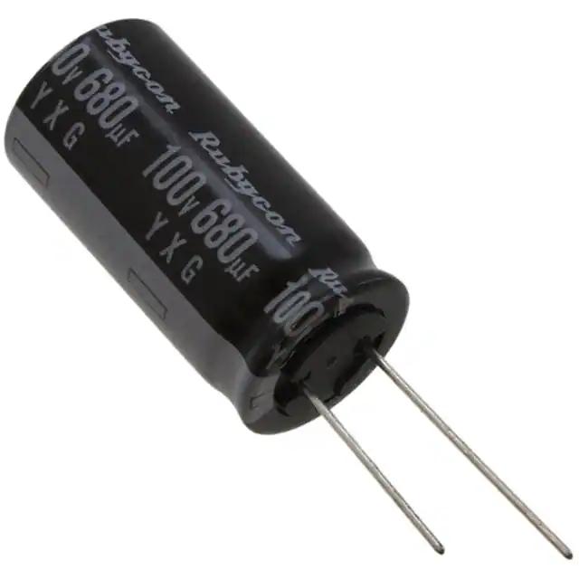 This is manufactured by Rubycon. The manufacturer part number is 100YXG680MEFC18X35.5. It is assigned with possible HTSUS value of 8532.22.0020. The product is rohs3 compliant. The product features a [Ploarization] polarity. It provides a 680 µf of capacitance value. The product has -40°c ~ 105°c operating temperature range. Moreover, the product comes in [Package/ Case]. It features ±20% of tolerance value. It also exhibits voltage rating of 100 v. It has the maximum seated height of 1.476" (37.50mm) Additionally, it carries a ripple current and high frequency of 1.79 a @ 100 khz. In addition, it is reach unaffected. Its ripple current at low frequency is 984.5 ma @ 120 hz. The product is widely employed in general purpose. It has an impedance value of 40 mohms. It is shipped in bulk. The product's diameters include 0.709" dia (18.00mm). It has a long 40 weeks standard lead time. Its typical moisture sensitivity level is 1 (unlimited). The product is available in through hole configuration. The product yxg, is a highly preferred choice for users. This product offers longer life span for 6000 hrs @ 105°c. It is assigned with 0.295" (7.50mm) of lead spacing. The product is designated with the ear99 code number