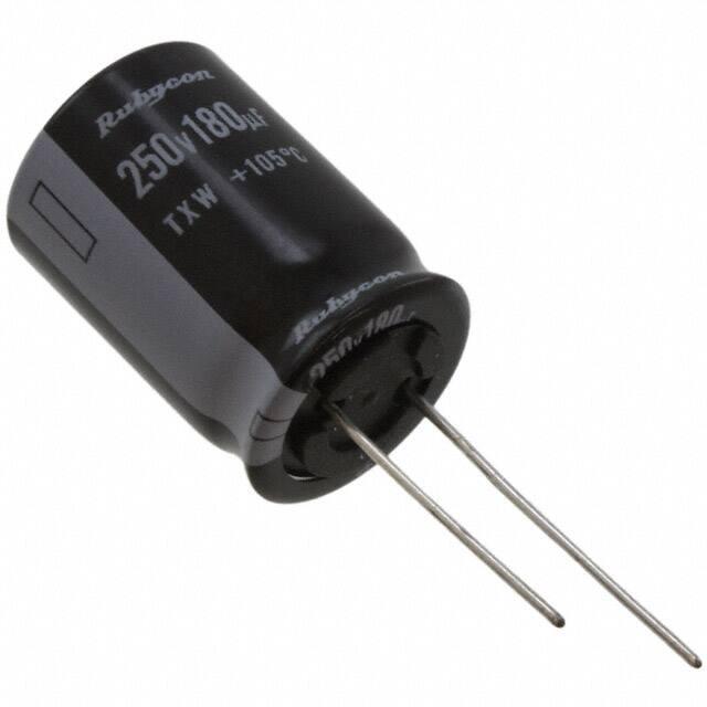This is manufactured by Rubycon. The manufacturer part number is 250TXW180MCC16X30. It is assigned with possible HTSUS value of 8532.22.0020. The product is rohs3 compliant. The product features a [Ploarization] polarity. It provides a 180 µf of capacitance value. The product has -40°c ~ 105°c operating temperature range. Moreover, the product comes in [Package/ Case]. It features ±20% of tolerance value. It also exhibits voltage rating of 250 v. It has the maximum seated height of 1.280" (32.50mm) Additionally, it carries a ripple current and high frequency of 1.33 a @ 100 khz. In addition, it is reach unaffected. Its ripple current at low frequency is 950 ma @ 120 hz. The product is widely employed in general purpose. It is shipped in bulk. The product's diameters include 0.630" dia (16.00mm). Its typical moisture sensitivity level is not applicable. The product is available in through hole configuration. The product txw, is a highly preferred choice for users. This product offers longer life span for 12000 hrs @ 105°c. It is assigned with 0.295" (7.50mm) of lead spacing. The product is designated with the ear99 code number