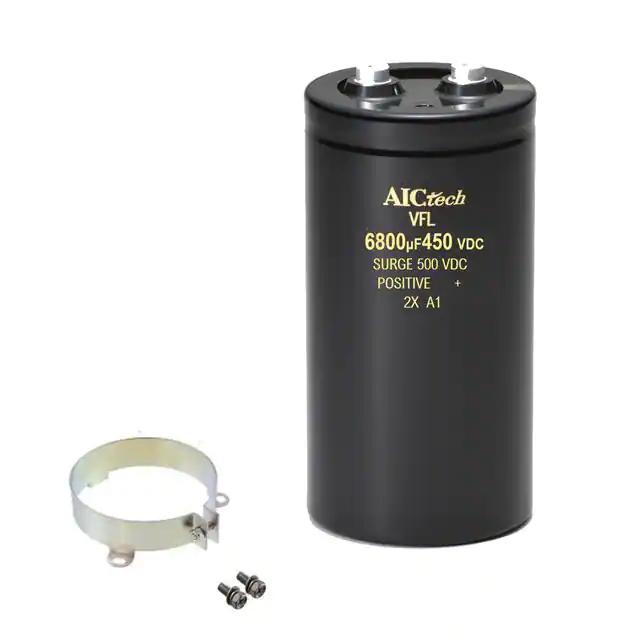 This is manufactured by AIC tech Inc.. The manufacturer part number is VFL2W682YF110. It is assigned with possible HTSUS value of 8532.22.0085. The product is rohs3 compliant. It carries ESR (Equivalent Series Resistance) of 15mohm @ 100hz. The product features a [Ploarization] polarity. It provides a 6800 µf of capacitance value. The product has -40°c ~ 85°c operating temperature range. Moreover, the product comes in [Package/ Case]. It features ±20% of tolerance value. It also exhibits voltage rating of 450 v. It has the maximum seated height of 4.409" (112.00mm) Additionally, it carries a ripple current and high frequency of 34.44 a @ 10 khz. In addition, it is reach unaffected. Its ripple current at low frequency is 24.6 a @ 120 hz. The product is widely employed in general purpose. It has an impedance value of 18 mohms. It is shipped in bulk. The product's diameters include 3.543" dia (90.00mm). Its typical moisture sensitivity level is not applicable. The product is available in chassis mount configuration. The product vfl, is a highly preferred choice for users. This product offers longer life span for 8000 hrs @ 85°c. It is assigned with 1.240" (31.50mm) of lead spacing. The product is designated with the ear99 code number