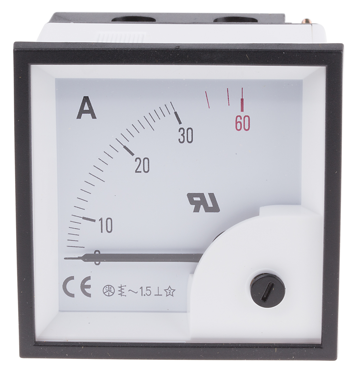 This is Analogue Panel Ammeter 60A AC 68mm x 68mm ±1.5 % Moving Iron manufactured by RS Pro. The manufacturer part number is 901-0359. The product rs pro, is a highly preferred choice for users. The product comes in 36.5mm depth. The product complies with ce, rohs compliant, tuv certified, ul e327849.