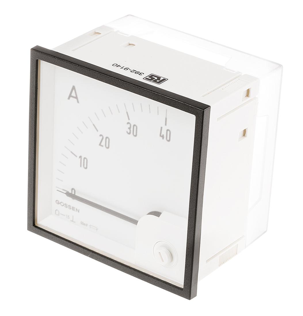 This is Analogue Panel Ammeter 40A DC 92mm x 92mm Moving Magnet manufactured by GILGEN Muller & Weigert. The manufacturer part number is 9600600040B. The product comes in 53mm depth.