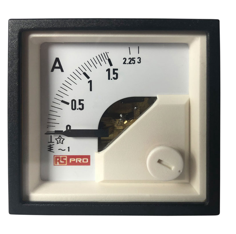 This is Analogue Panel Ammeter 3 (Input Scale)A AC 48mm x 48mm 1 % Moving Iron manufactured by RS PRO. The manufacturer part number is 186-2417. The product comes in 54 (<30 a)mm depth.