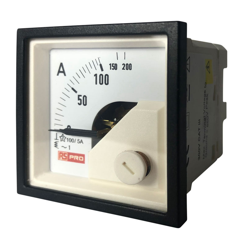 This is Analogue Panel Ammeter 10 (Input) A 100/5 (CT) A 200 (Scle) A AC 48mm x 48mm 1 % Moving Iron manufactured by RS PRO. The manufacturer part number is 186-2420. The product comes in 54 (<30 a) mm, 72 (30 → 60 a) mm depth.