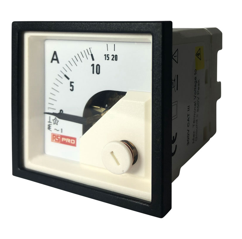 This is Analogue Panel Ammeter 20 (Input)A AC 48mm x 48mm 1 % Moving Iron manufactured by RS PRO. The manufacturer part number is 186-2422. The product comes in 54 (<30 a)mm depth.