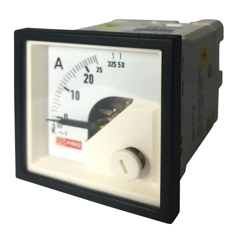 This is Analogue Panel Ammeter 50 (Input)A AC 48mm x 48mm 1 % Moving Iron manufactured by RS PRO. The manufacturer part number is 186-2425. The product comes in 54 (<30 a) mm, 72 (30 → 60 a) mm depth.