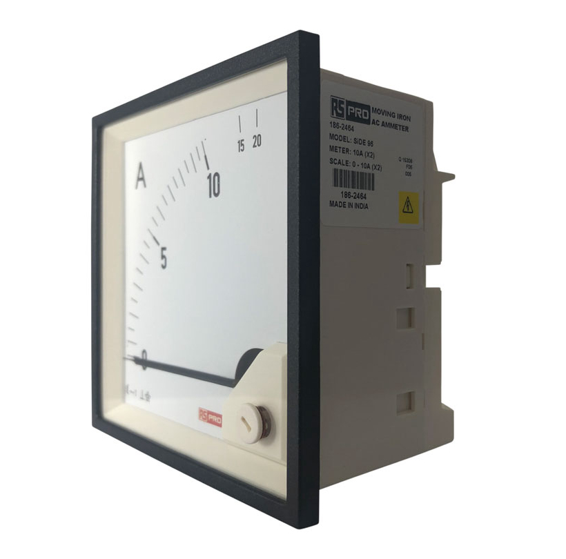 This is Analogue Panel Ammeter 20 (Input)A AC 96mm x 96mm 1 % Moving Iron manufactured by RS PRO. The manufacturer part number is 186-2464. The product comes in 54 (<30 a)mm depth.
