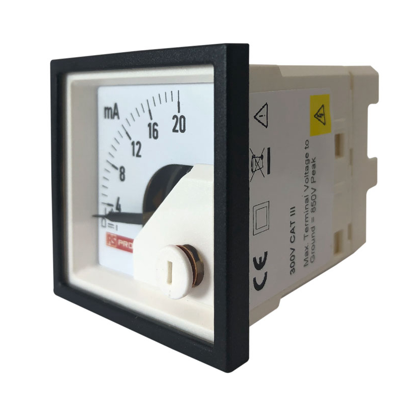 This is Analogue Panel Ammeter 20 (Input)mA DC 48mm x 48mm 1 % Moving Coil manufactured by RS PRO. The manufacturer part number is 186-2476. The product comes in 54 (<30 a)mm depth.