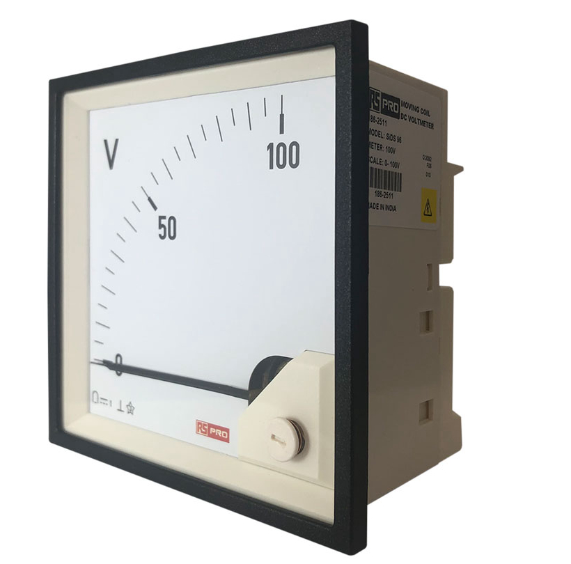 This is Analogue Panel Ammeter DC 96mm x 96mm 1 % Moving Coil manufactured by RS PRO. The manufacturer part number is 186-2511. The product comes in 54 (<4 a) mm, 67 (5 → 60 a) mm, 67 (60 → 100 a) mm depth.