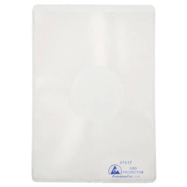 This is manufactured by Protektive Pak. The manufacturer part number is 47517. It is assigned with possible HTSUS value of 3923.21.0095. It is shipped in bulk. Specifications include 6.50" l x 4.50" w, 25 pack, adhesive back, dissipative, pvc, thumb hole. The product protektive pak®, is a highly preferred choice for users. The product is not applicable. It is a type of protective sleeve accessory. In addition, it is reach unaffected. Its typical moisture sensitivity level is not applicable. The product is suitable for use with documents. It has a long 2 weeks standard lead time. The product is designated with the ear99 code number