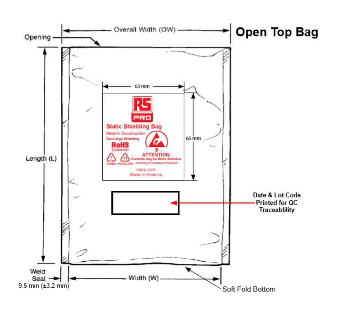 This is Heat seal static shielding bag610x914mm manufactured by RS PRO. The manufacturer part number is 190-8429. It is 0.07mm thick. Furthermore, the product is 610mm wide. Its accurate length is 914mm. The product has an added tensile strength of 31.72mpa. It comes in bag configuration.