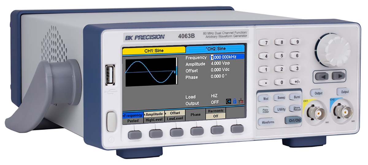 This is 4062B Arbitrary Waveform Generator manufactured by BK Precision. The manufacturer part number is BK4062B. It features a remarkable 4.3 in tft display. The given dimensions of the product include 260.3 x 107.2 x 295mm. The typical product's weight is 3.4kg. It has a maximum operating temperature of +40°c. Whereas, the minimum operating temperature of the product is 0°c. In addition, the height is 107.2mm. Furthermore, the product is 260.3mm wide. Its accurate length is 295mm. bnc Connector type offer robust functionality. Features 4 digit resolution.