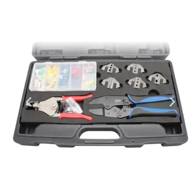 This is manufactured by Aven Tools. The manufacturer part number is 10171-KIT. It is assigned with possible HTSUS value of 8205.70.0060. It is shipped in box. The product is not applicable. In addition, it is reach unaffected. Its typical moisture sensitivity level is 1 (unlimited). Contents Include: box, case, crimper frame, die sets, terminals, wire stripper. The product's typical Applications include uses in electrical. The product is designated with the ear99 code number