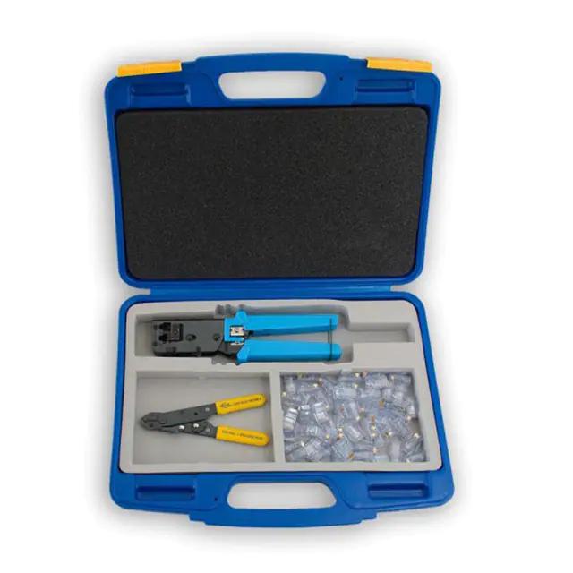 This is manufactured by Triplett. The manufacturer part number is HS-TK. It is assigned with possible HTSUS value of 8536.69.4030. It is shipped in case. The product is rohs non-compliant. Contents Include: connectors, crimper, tester, wire cutter. The product's typical Applications include uses in data cable installation. The product is designated with the ear99 code number
