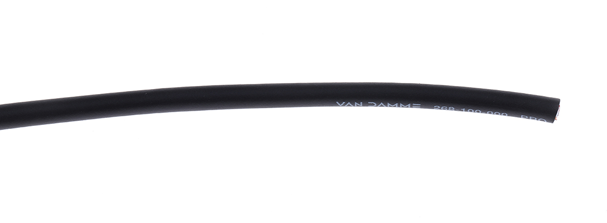 This is 2 Core Screened Black Twisted Pair Microphone Cable 3.6mm od manufactured by Van Damme. The manufacturer part number is 268-100-000. The conductor is made from copper material. Its accurate length is 100m. It has a robust pe insulation material.