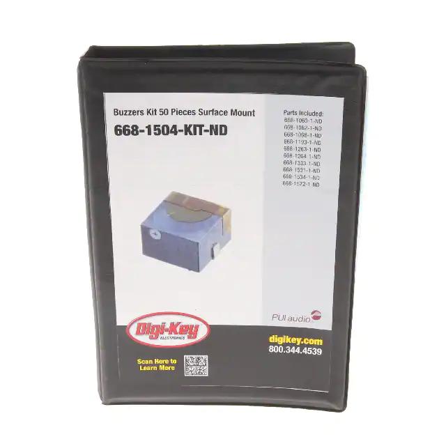This is manufactured by PUI Audio, Inc.. The manufacturer part number is 668-1504-KIT. The buzzers is designed to provide robust applications in a variety of specific settings. The product is available in surface mount configuration. It is assigned with possible HTSUS value of 8531.80.9041. It is shipped in bulk. Specifications include magnetic, piezo. The product smt, is a highly preferred choice for users. Its typical moisture sensitivity level is 1 (unlimited). Available in 50 pieces (10 values - 5 each) quantity. The product is designated with the ear99 code number