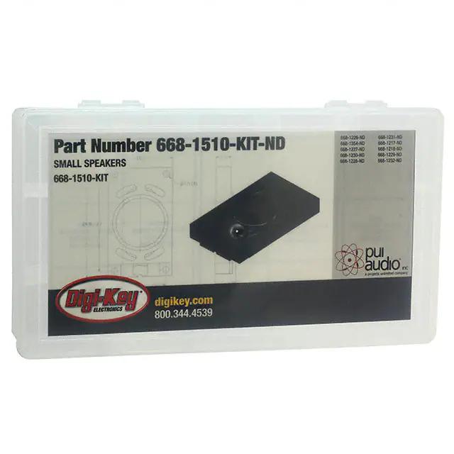 This is manufactured by PUI Audio, Inc.. The manufacturer part number is 668-1510-KIT. The speaker is designed to provide robust applications in a variety of specific settings. The product is available in surface mount configuration. It is assigned with possible HTSUS value of 8518.29.8000. It is shipped in bulk. Specifications include magnetic. Its typical moisture sensitivity level is 1 (unlimited). Available in 27 pieces (9 values - 3 each) quantity. The product is designated with the ear99 code number