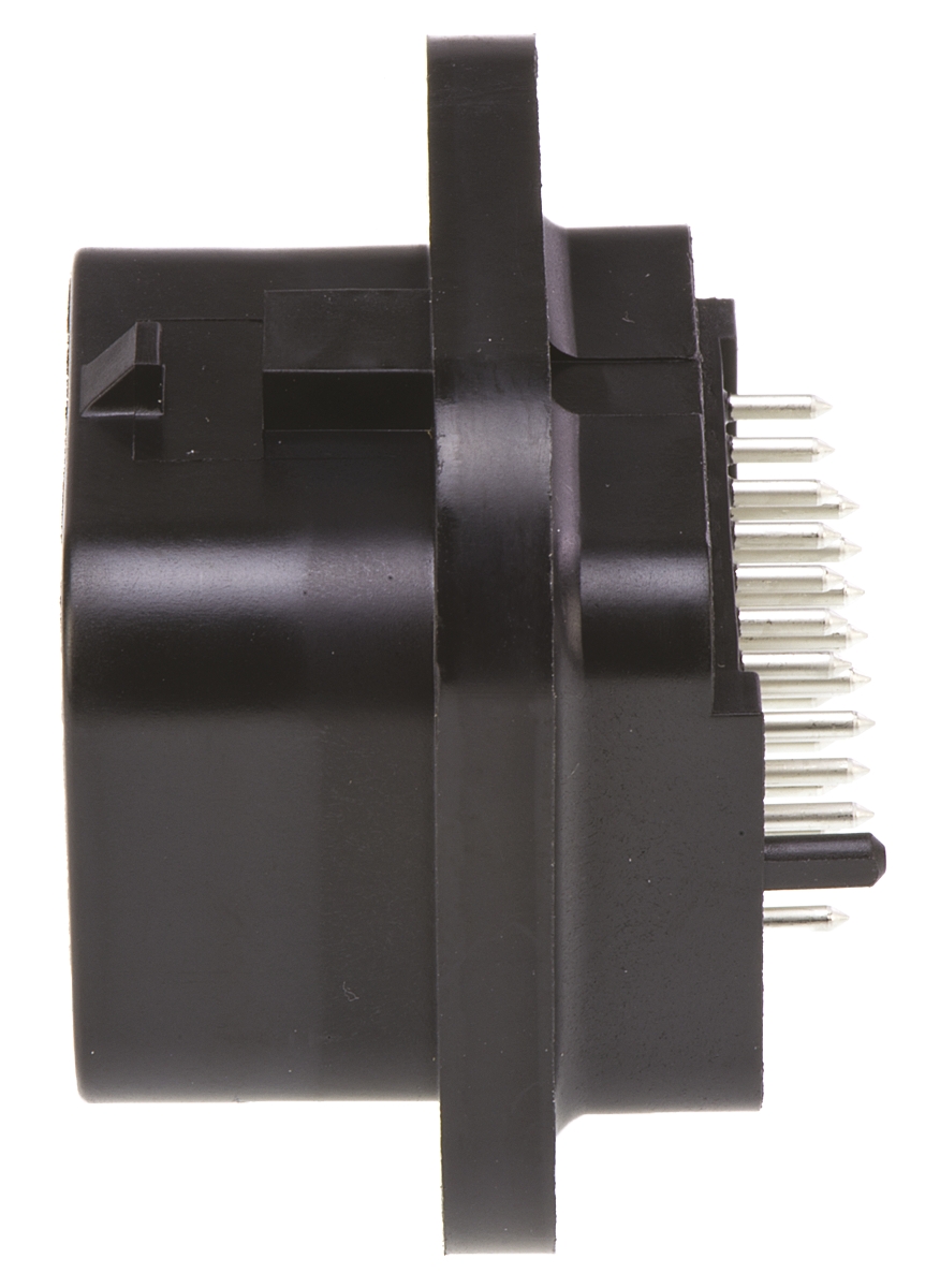 This is SUPER SEAL Series 4 Row 26 Way Through Hole Plug Header with Solder Termination Method manufactured by TE Connectivity. The manufacturer part number is 6473418-1. Whereas, the minimum operating temperature of the product is -40°c. The product is available in through hole configuration. In addition, male is the available "Gender" of the product. In addition, the height is 27.9mm. The product also features robust pet housing material. Furthermore, the product is 45.5mm wide. The product comes in 36.5mm depth. It comes in 4 of rows. The product superseal, is a highly preferred choice for users. The product contains 26 contacts. It comes in header configuration. It has a maximum operating temperature of +125°c. The product is made from sturdy brass materials.