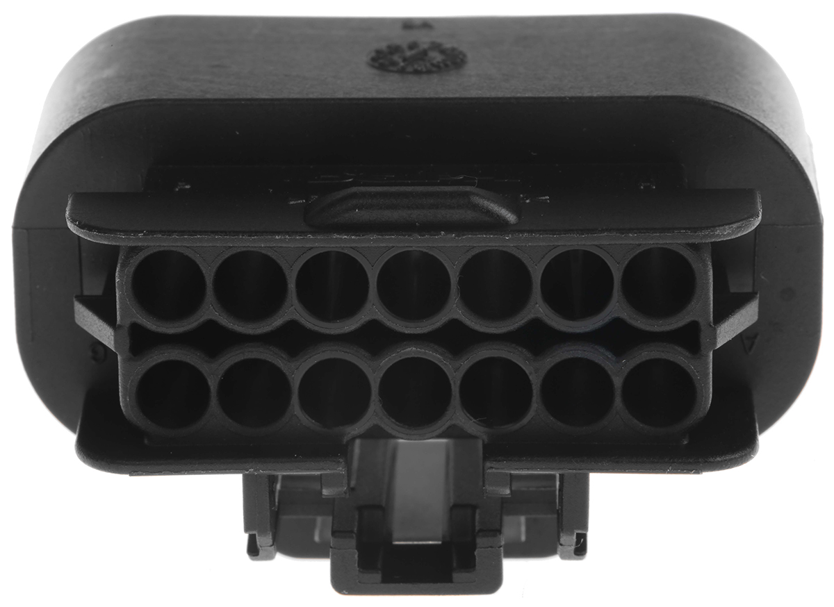 This is GT 150 Series 4 Row 14 Way Cable Mount Socket Connector with Crimp Termination Method manufactured by Delphi. The manufacturer part number is 15326856. The product has a current rating of 15a. Whereas, the minimum operating temperature of the product is -40°c. The product is available in cable mount configuration. In addition, female is the available "Gender" of the product. In addition, the height is 28.2mm. The product also features robust pa 6 housing material. Furthermore, the product is 46.2mm wide. The product comes in 29.3mm depth. It comes in 4 of rows. The product gt 150, is a highly preferred choice for users. The product contains 14 contacts. It comes in automotive connector configuration. It has a maximum operating temperature of +125°c. The product is made from sturdy tin brass materials.