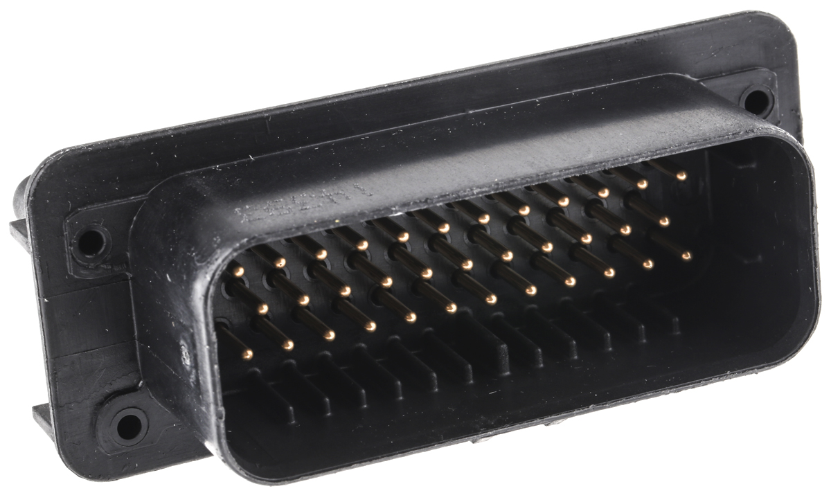 This is AMPSEAL Series 3 Row 35 Way Panel Mount Plug PCB Connector with Solder Termination Method manufactured by TE Connectivity. The manufacturer part number is 1-776230-1. Whereas, the minimum operating temperature of the product is -40°c. The product is available in panel mount configuration. In addition, male is the available "Gender" of the product. In addition, the height is 32.1mm. The product also features robust glass fibre reinforced pbt housing material. Furthermore, the product is 76.9mm wide. The product comes in 34.3mm depth. It comes in 3 of rows. The product ampseal, is a highly preferred choice for users. The product contains 35 contacts. It comes in pcb connector configuration. It has a maximum operating temperature of +125°c. The product is made from sturdy brass materials.