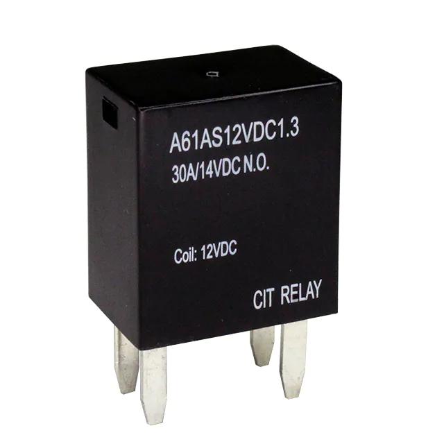 This is manufactured by CIT Relay and Switch. The manufacturer part number is A61AS12VDC1.3. It is assigned with possible HTSUS value of 8536.41.0050. The product is rohs compliant. The coil voltage of the product is 12vdc. Moreover, it has pc pin terminal style. The product has -40°c ~ 85°c operating temperature range. It holds up to 109 ohms coil resistance. It has a coil current of 110.1 ma. The coil is a non latching type. The product's switching voltage is 75vdc - max. Robust coil power of 1.3w. In addition, it is reach unaffected. On the other hand, 8.4 vdc is the given crucial/must operating voltage. It is shipped in tray. It also has a spst-no (1 form a) contact form. Its typical moisture sensitivity level is 1 (unlimited). The operating time of the product is 5 ms. While the must release voltage is a 1.2 vdc. It has a long 19 weeks standard lead time. It has a contact current rating of 30 a. The splendid features of the product include sealed - fully. The product is available in through hole configuration. The product a6, is a highly preferred choice for users. While 2 ms is its release time. The product is designated with the ear99 code number Moreover, it corresponds to a61as, a base product number of the product. The product is made from sturdy silver tin oxide (agsno) materials.