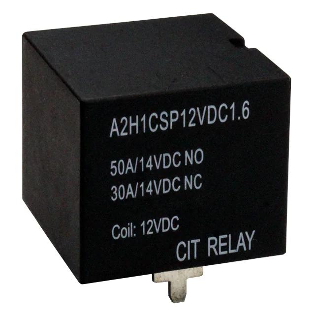 This is manufactured by CIT Relay and Switch. The manufacturer part number is A2H1CSP12VDC1.6. It is assigned with possible HTSUS value of 8536.41.0050. The product is rohs compliant. The coil voltage of the product is 12vdc. Moreover, it has pc pin terminal style. The product has -40°c ~ 125°c operating temperature range. It holds up to 90 ohms coil resistance. It has a coil current of 133.3 ma. The coil is a non latching type. The product's switching voltage is 75vdc - max. In addition, it is reach unaffected. On the other hand, 7.8 vdc is the given crucial/must operating voltage. It is shipped in tray. It also has a spdt (1 form c) contact form. Its typical moisture sensitivity level is 1 (unlimited). The operating time of the product is 10 ms. While the must release voltage is a 1.2 vdc. It has a long 15 weeks standard lead time. It has a contact current rating of 50 a. The product is available in through hole configuration. The product a2h, is a highly preferred choice for users. While 10 ms is its release time. The product is designated with the ear99 code number Moreover, it corresponds to a2h1csp, a base product number of the product. The product is made from sturdy silver tin oxide (agsno) materials.