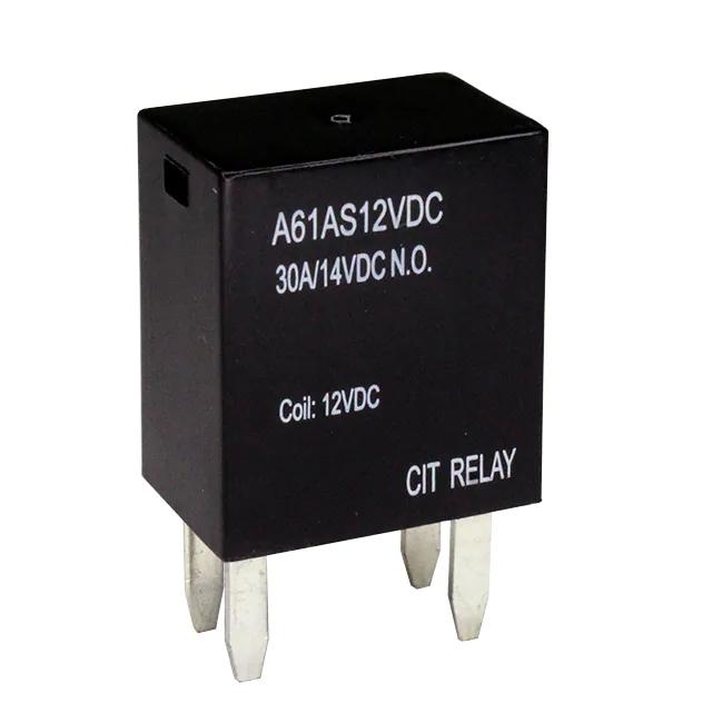 This is manufactured by CIT Relay and Switch. The manufacturer part number is A61AS12VDC.9D. It is assigned with possible HTSUS value of 8536.41.0050. The product is rohs compliant. The coil voltage of the product is 12vdc. Moreover, it has pc pin terminal style. The product has -40°c ~ 85°c operating temperature range. It holds up to 160 ohms coil resistance. It has a coil current of 75 ma. The coil is a non latching type. The product's switching voltage is 75vdc - max. Robust coil power of 900mw. In addition, it is reach unaffected. On the other hand, 8.4 vdc is the given crucial/must operating voltage. It is shipped in tray. It also has a spst-no (1 form a) contact form. Its typical moisture sensitivity level is 1 (unlimited). The operating time of the product is 5 ms. While the must release voltage is a 1.2 vdc. It has a long 19 weeks standard lead time. It has a contact current rating of 30 a. The splendid features of the product include diode, sealed - fully. The product is available in through hole configuration. The product a6, is a highly preferred choice for users. While 2 ms is its release time. The product is designated with the ear99 code number Moreover, it corresponds to a61as, a base product number of the product. The product is made from sturdy silver tin oxide (agsno) materials.