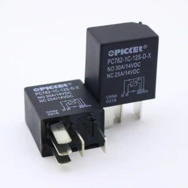 This is manufactured by Picker Components. The manufacturer part number is PC782-1C-12S-D-X. It is assigned with possible HTSUS value of 8536.41.0050. The product is rohs3 compliant. The coil voltage of the product is 12vdc. Moreover, it has plug in, quick connect - multiple sizes terminal style. The product has -40°c ~ 125°c operating temperature range. It holds up to 96 ohms coil resistance. It has a coil current of 125 ma. The coil is a non latching type. The product's switching voltage is 75vdc - max. Robust coil power of 1.5w. In addition, it is reach unaffected. On the other hand, 8.4 vdc is the given crucial/must operating voltage. It is shipped in tube. It also has a spdt (1 form c) contact form. Its typical moisture sensitivity level is 1 (unlimited). The operating time of the product is 10 ms. While the must release voltage is a 1.2 vdc. It has a long 25 weeks standard lead time. It has a contact current rating of 30 a. The splendid features of the product include diode, sealed - fully. The product is available in socketable configuration. While 7 ms is its release time. The product is designated with the ear99 code number The product is made from sturdy silver tin oxide (agsno) materials.