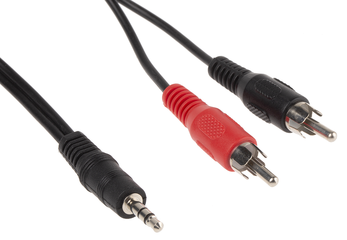 This is 1.5m 3.5 mm Male Jack to Male Phono Jack x 2 Audio Cable Assembly manufactured by RS Pro. The manufacturer part number is 155-7793. The product has a current rating of 5 a. Its accurate length is 1.5m.