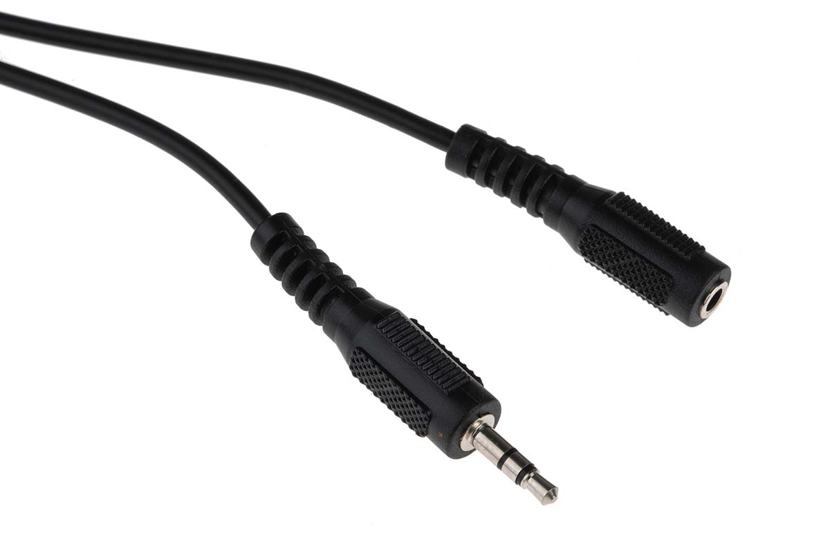 This is 2m 3.5 mm Male Jack Plug to 3.5 mm Female Jack Socket Audio Cable Assembly manufactured by RS Pro. The manufacturer part number is 742-4557. Its accurate length is 2m.