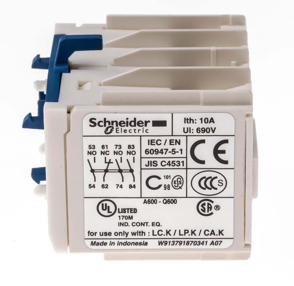 This is Clip On Auxiliary Contact with Screw Terminal 3NO/NC 10 A 600 V ac manufactured by Schneider Electric. The manufacturer part number is LA1KN31. The product la1k, is a highly preferred choice for users. Whereas, the minimum operating temperature of the product is -25°c. The product contains 4 contacts. It has a maximum operating temperature of +50°c. The terminal is a screw type.