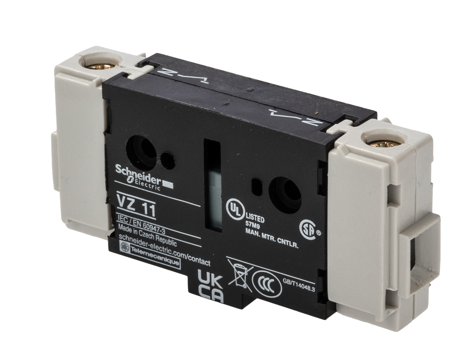 This is Side Mount Auxiliary Contact 32 A manufactured by Schneider Electric. The manufacturer part number is VZ11. The product vz11, is a highly preferred choice for users.