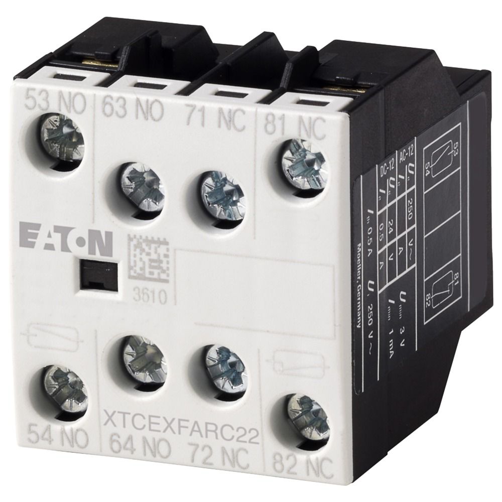 This is Auxiliary Contact - 2NC + 2NO 4 Contact Front Mount 10 A dc 4 A ac manufactured by Eaton. The manufacturer part number is 139580 DILA-XHIR22. Whereas, the minimum operating temperature of the product is -25°c. The product eaton moeller, is a highly preferred choice for users. The product contains 4 contacts. It has a maximum operating temperature of +60°c. The terminal is a screw type.