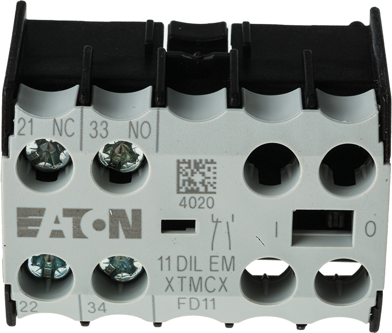 This is Auxiliary Contact - 1NC + 1NO 2 Contact Front Mount 2.5 A dc 4 A ac manufactured by Eaton. The manufacturer part number is 010080 11DILEM. The product contains 2 contacts. The terminal is a screw type.