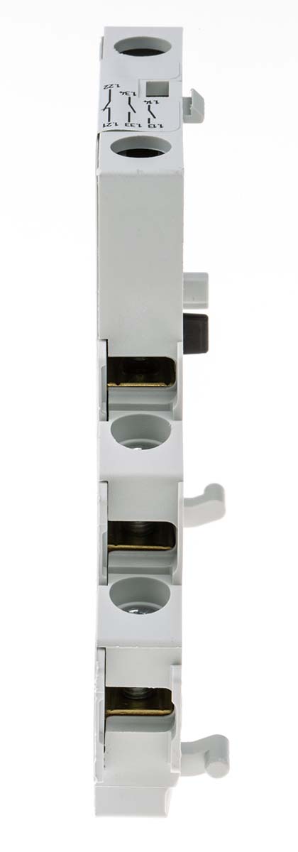 This is Auxiliary Contact - 2NC + 2NO 3 Contact Side Mount 2 A dc 3.5 A ac manufactured by Eaton. The manufacturer part number is 072894 NHI21-PKZ0. The product contains 3 contacts. The terminal is a screw type.