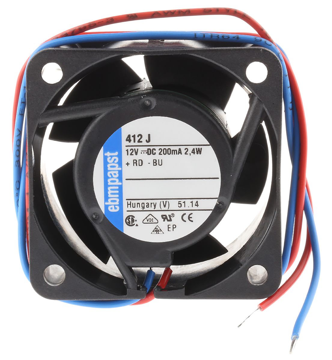 This is Axial Fan 40 x 40 x 25.4mm 19m³/h 2.4W 12 V dc (400J Series) manufactured by ebm-papst. The manufacturer part number is 412J. The given dimensions of the product include 40 x 40 x 25mm. This has integrated with a ball, a bearing with long-lasting features. In addition, the height is 40mm. Furthermore, the product is 40mm wide. The product comes in 25.4mm depth. It has a 19m³/h air flow rate.