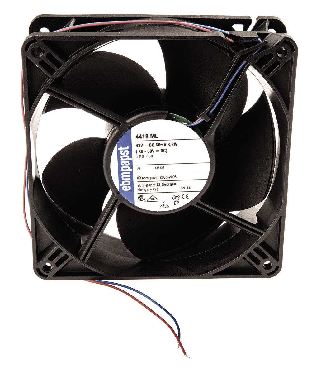 This is DC Axial Fan 119 x 119 x 38mm 168m³/h 3.2W 48 V dc (4400 Series) manufactured by ebm-papst. The manufacturer part number is 4418ML. The given dimensions of the product include 119 x 119 x 38mm. This has integrated with a ball, a bearing with long-lasting features. In addition, the height is 119mm. Furthermore, the product is 119mm wide. The product comes in 38mm depth. It has a 168m³/h air flow rate.