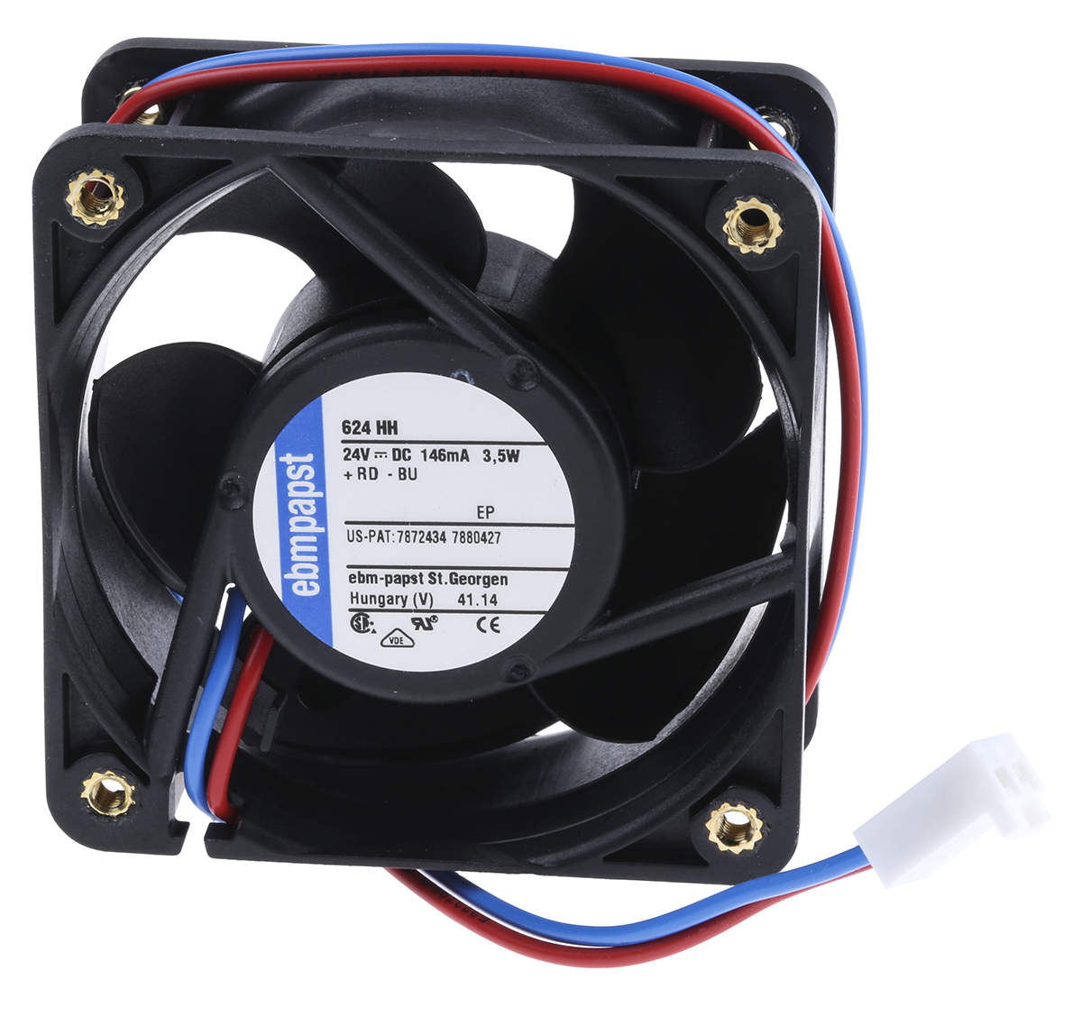 This is Axial Fan 60 x 60 x 25mm 56m³/h 3.6W 24 V dc (620 Series) manufactured by ebm-papst. The manufacturer part number is 624HH-RS0. The given dimensions of the product include 60 x 60 x 25mm. This has integrated with a ball, a bearing with long-lasting features. In addition, the height is 60mm. Furthermore, the product is 60mm wide. The product comes in 25mm depth. It has a 56m³/h air flow rate.