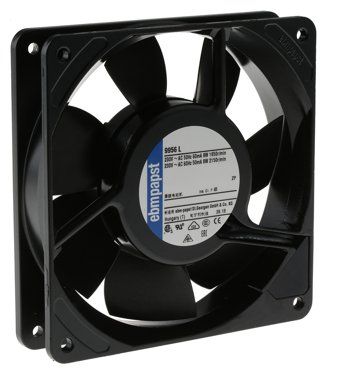 This is Axial Fan 119 x 119 x 25mm 84m³/h 9.5W 230 V ac (9900 Series) manufactured by ebm-papst. The manufacturer part number is 9956L. The given dimensions of the product include 119 x 119 x 25mm. This has integrated with a ball, a bearing with long-lasting features. In addition, the height is 119mm. Furthermore, the product is 119mm wide. The product comes in 25mm depth. It has a 84m³/h air flow rate.