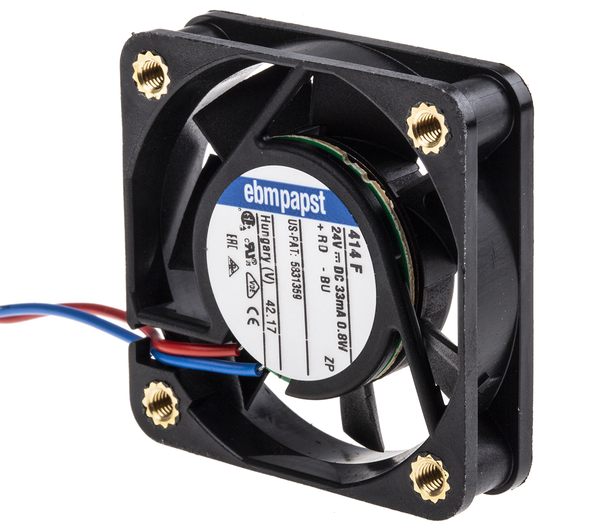 This is Axial Fan 40 x 40 x 10mm 8m³/h 800mW 24 V dc (400F Series) manufactured by ebm-papst. The manufacturer part number is 414F-RS0. The given dimensions of the product include 40 x 40 x 10mm. This has integrated with a sleeve, a bearing with long-lasting features. In addition, the height is 40mm. Furthermore, the product is 40mm wide. The product comes in 10mm depth. It has a 8m³/h air flow rate.