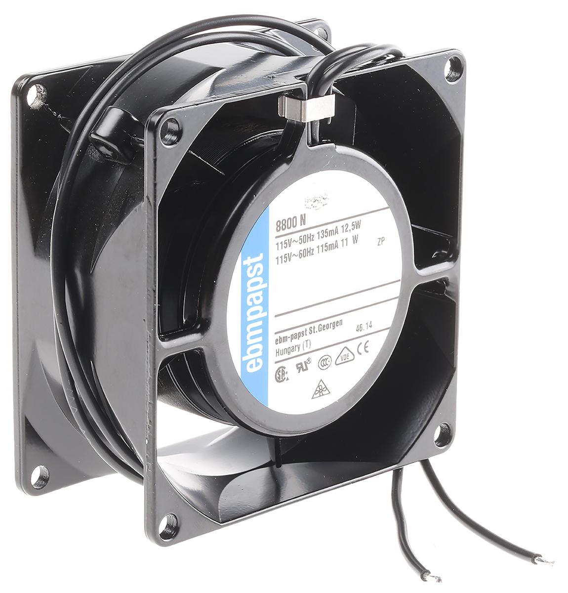 This is Axial Fan 80 x 80 x 38mm 47m³/h 11W 115 V ac (8000N Series) manufactured by ebm-papst. The manufacturer part number is 8800N. The given dimensions of the product include 80 x 80 x 38mm. This has integrated with a sleeve, a bearing with long-lasting features. In addition, the height is 80mm. Furthermore, the product is 80mm wide. The product comes in 38mm depth. It has a 47m³/h air flow rate.