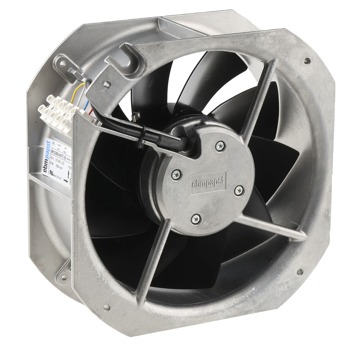 This is DC Axial Fan 225 x 225 x 80mm 1095m³/h 55W 24 V dc (W1G200 Series) manufactured by ebm-papst. The manufacturer part number is W1G200-HH77-52. The given dimensions of the product include 225 x 225 x 80mm. This has integrated with a ball, a bearing with long-lasting features. In addition, the height is 225mm. Furthermore, the product is 225mm wide. The product comes in 80mm depth. It has a 1095m³/h air flow rate. These sensors are sort of tachometer.